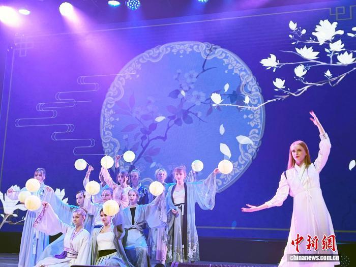 当地时间9月27日,“月满华诞 同心共圆”中俄人文交流活动在莫斯科548学校举行。图为俄罗斯学生表演“灯笼舞”。中新网记者 田冰 摄