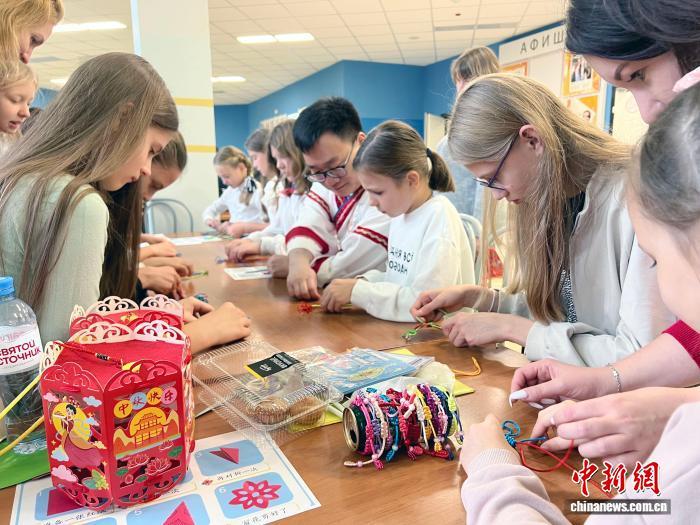 当地时间9月27日,“月满华诞 同心共圆”中俄人文交流活动在莫斯科548学校举行。图为俄罗斯学生参加中华文化互动体验活动。中新网记者 田冰 摄