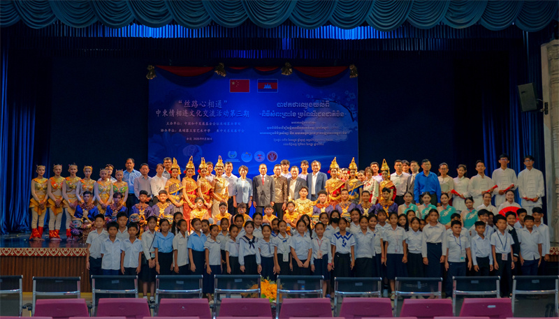 人民网曼谷9月30日电 (记者白元琪)金边消息:9月30日,中国和平发展基金会驻柬埔寨办事处(以下简称驻柬办事处)与柬中关系发展学会在柬埔寨王家艺术中学联合举办“丝路心相通·中柬情相连”交流活动。柬文化与艺术部副国务秘书金皮比能、王家艺术中学校长亨坎桑、柬中关系发展学会会长谢莫尼勒及驻柬办事处主任王亚辉等出席,柬华应用科技大学校长杜曾慧、王家研究院孔子学院院长吴滔及青年团体代表等约500人参加。