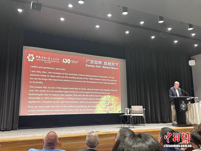 中新网悉尼10月4日电 (记者 薄雯雯)广交会澳大利亚推介会暨中企出海澳大利亚论坛3日在位于悉尼的新南威尔士州议会大厦举行。本次活动由澳大利亚中国出海中心、澳大利亚华人餐饮业商会和澳中科技创新联盟联合主办。