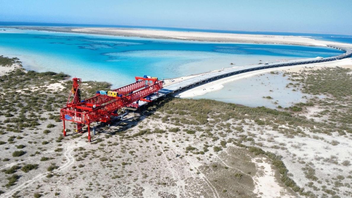人民网迪拜10月2日电 (记者管克江)沙特红海西海岸,郁郁葱葱的红树林上方,一座飞桥正在红色钢结构桩梁一体机的牵引下逐步延伸。“这是中东地区首次投用桩梁一体机。使用这套自主研发的智能造桥装备,我们能在架桥施工的同时保护当地生态。”沙特红海拉赫克连接路与跨海桥工程项目经理李伟伟介绍。