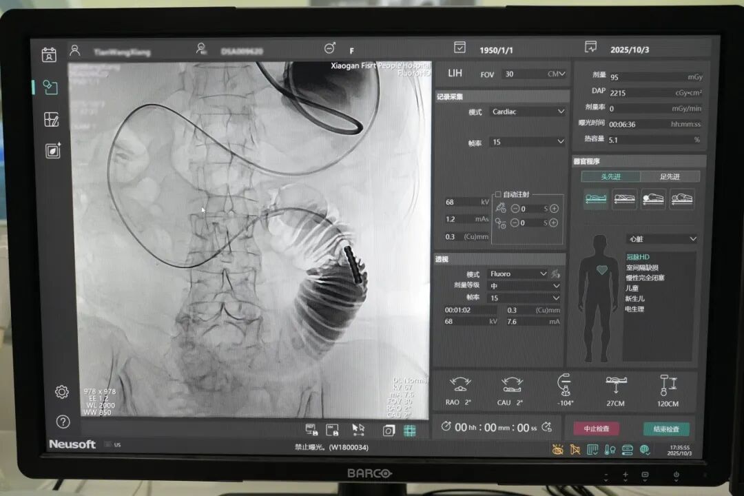 面对如此棘手的病情,医院迅速组织多学科会诊。介入血管科主任黄迁祥及其团队在全面评估患者情况后,决定采用目前国内先进的DSA引导下肠梗阻导管置入技术为患者进行治疗。