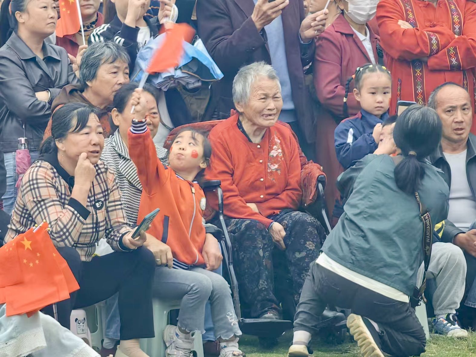 当《好日子》的旋律响起,刘凤英老人紧紧盯着舞台,浑浊的眼睛渐渐发亮,嘴角扬起久违的笑容,泪水突然滑落:“这是她瘫痪后第一次为演出流泪,像是把十年的闷都哭出来了。”段秀容轻拭母亲的眼泪,自己也红了眼眶。周围观众纷纷让路,有人搬来凳子,有人递上温水,现场暖意涌动。