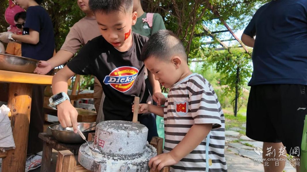 不止东山问梅村,双节叠加的黄梅处处涌动着文旅热潮。香樟园生态旅游区以“传统民俗+亲子互动”为脉络,扎稻草人、猜民俗灯谜等活动让孩子们追着学手艺;袁夫稻田则迎来了“金色狂欢”,连片的稻田被染成蜜糖色,游客们一边体验扎染、漆扇手作,一边在稻田音乐会的旋律里闻着稻香漫步,沉浸式的田园野趣让景区的露营地提前一周订满。
