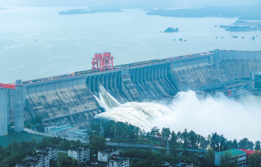 丹江口大坝笼罩在烟雨中。图/记者刘昆