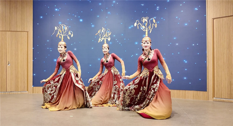 三人舞《金步舞冠》。中国驻大阪旅游办事处供图