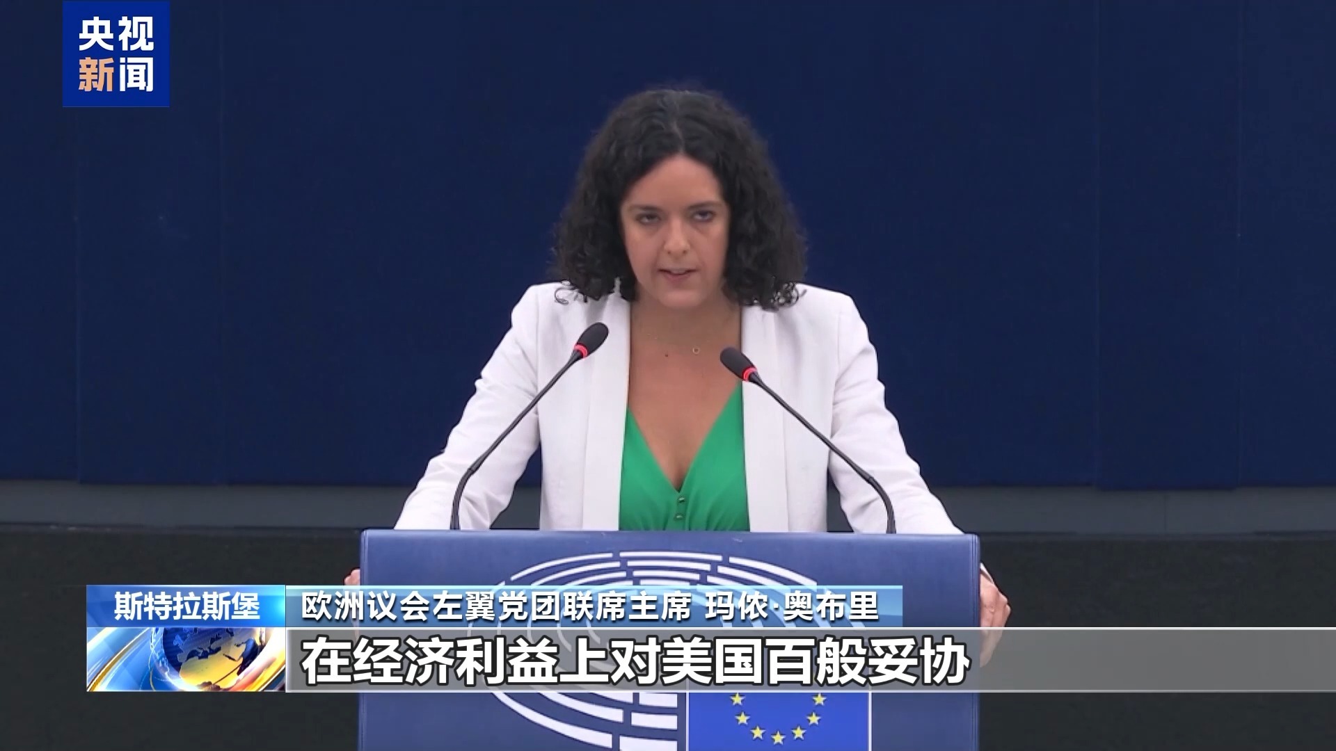 欧洲议会左翼党团联席主席 玛侬·奥布里:冯德莱恩向特朗普投降,在经济利益上对美国百般妥协,牺牲了欧洲人的利益。