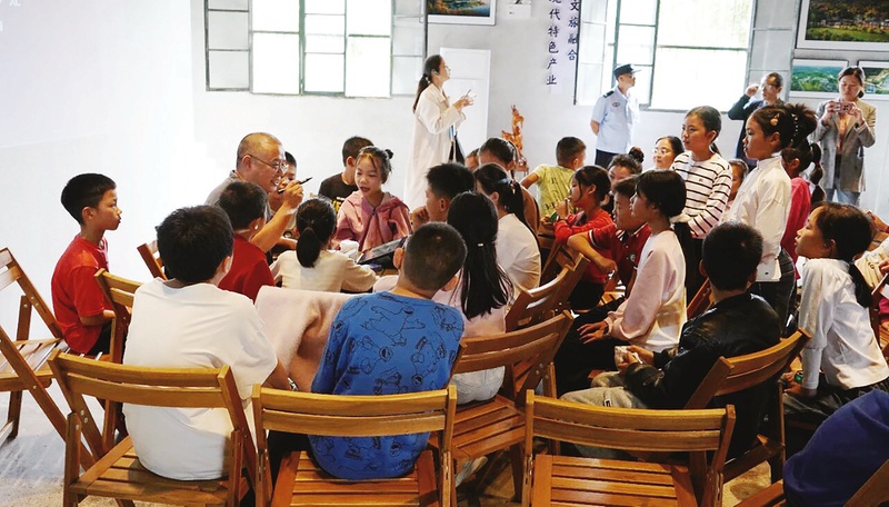 “遵循‘修旧如旧’原则,我们将这里打造成集图书阅览、民俗展陈、观影休憩、自然研学、文创开发、轻咖餐饮于一体的公共文化空间。”长岗镇党委副书记、镇长陈刚介绍,自7月份试运营以来,已累计接待游客1万余人。推开门,暖黄灯光下,4000余册自然博物类书籍摆放整齐,墙上的动物标本吸引不少游客驻足。“这里可以看书、看蝴蝶,还能做手工、画画。”长岗镇中心小学学生王梓煊的话语里,满是对博物馆的喜爱。除自然与农耕知识外,博物馆更是展示家乡风采、传承传统文化的“窗口”。非遗技艺展区内,根雕作品纹理细腻,微缩编钟尽显古乐神韵,竹编艺人现场演示指尖巧思;场景复原区重现旧时乡村院落,蓑衣、辣椒挂串等老物件唤起乡愁记忆;乡村创意生活摄影展上,四季风光、民俗活动、百姓笑脸定格成帧,生动展现随县风土人情。孩子们驻足观看、踊跃提问,对家乡的认知在潜移默化中加深,文化认同与乡土情怀悄然萌发。