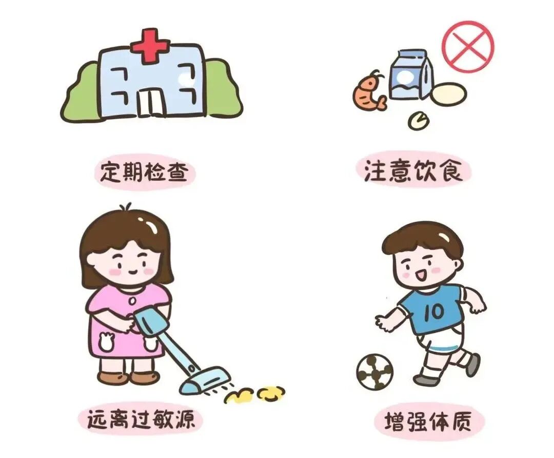 远离烟草、花粉、宠物毛发、冷空气等已知过敏原,积极预防呼吸道感染。