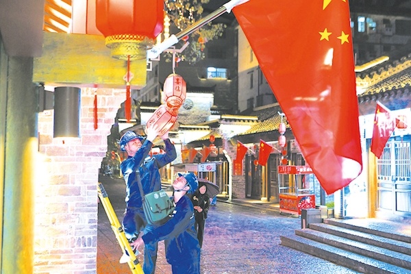 近日,国网随州供电公司员工在草甸子街历史文化街区巡检用电设备,保障供电安全可靠。(随州日报通讯员 吴绪章 蒋林颖摄)