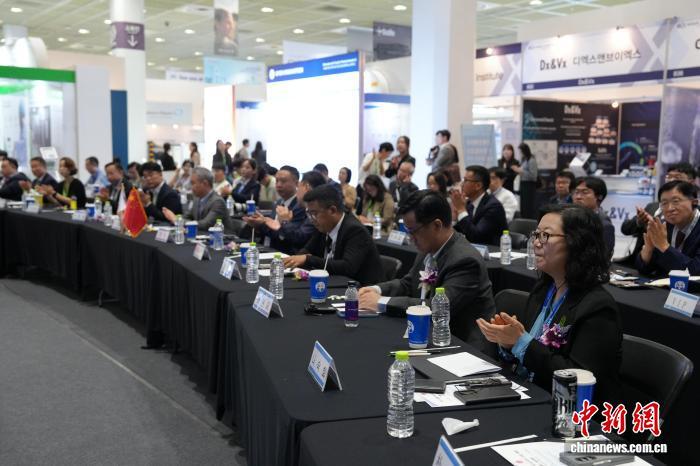 10月15日,“2025中韩生物医药产业对接活动”在韩国国际生物医药展会期间于首尔举办。图为活动现场。中新网记者 刘旭 摄