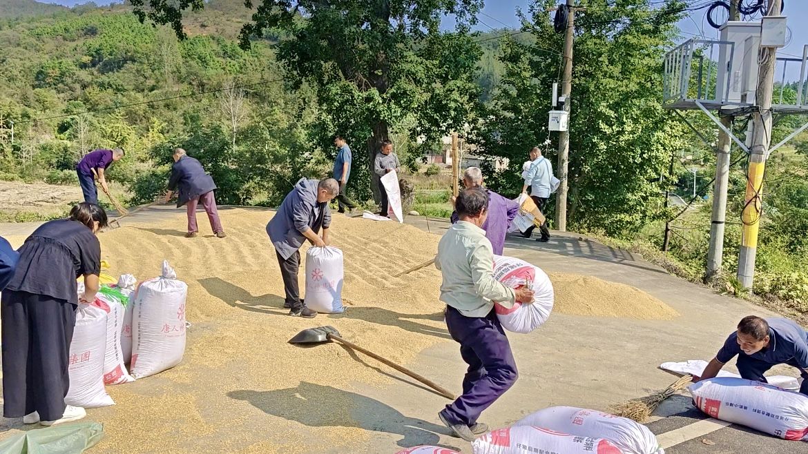 “家里劳动力少,正愁晒谷!多亏干部们给场地、帮干活,解决了大难题!”龙潭村村民颜泽礼一边装粮一边感慨。