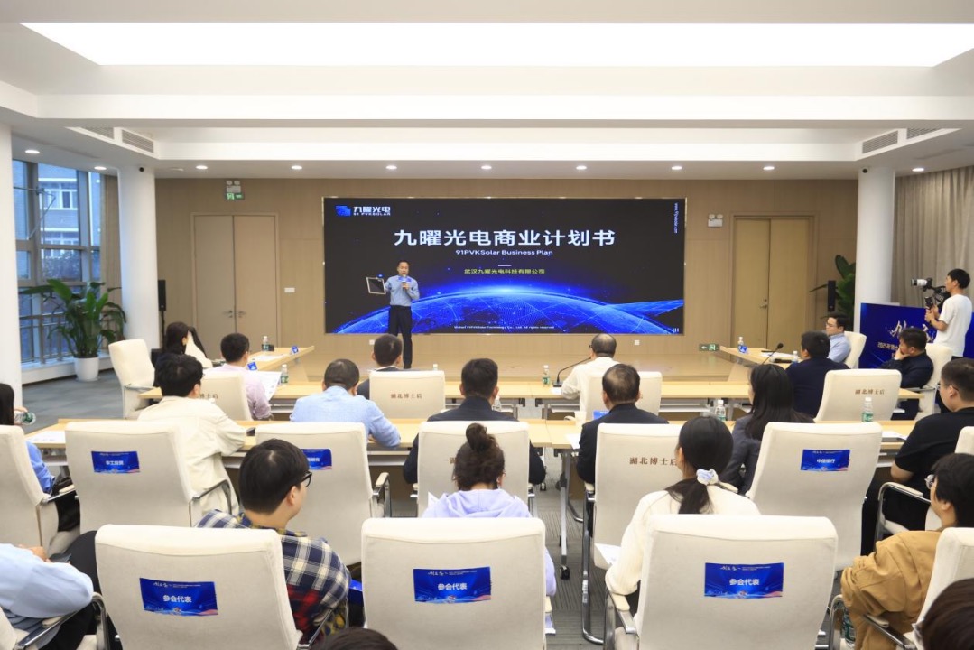 项目展示环节,4个博士后及留学回国人才项目——钙钛矿太阳能电池、抗覆冰表征仪、分布式光纤传感、多智能体协同开发工具依次登台。每个项目“8分钟路演+12分钟互动”,直击技术壁垒、市场切口与商业模式,与武汉大学、楚商领先创业投资基金、武汉双石银通私募基金等机构的教授、投资人现场过招,火花四射。