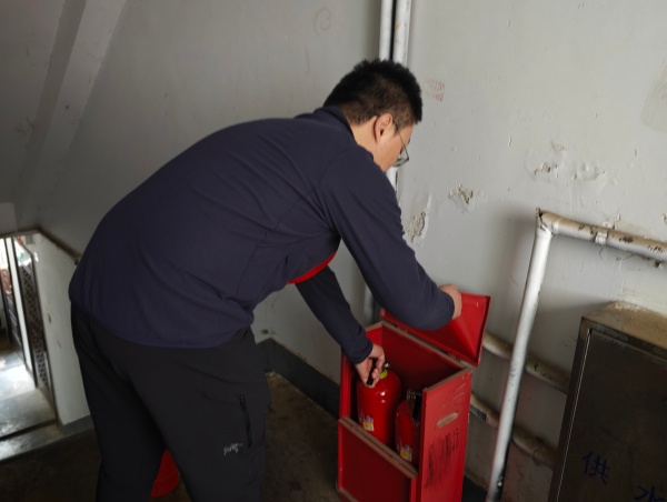 为促进学习成果转化为服务群众的实际行动,大讲堂专门设置了实践环节。学习结束后,青年党员们热情高涨,立即投入到老旧楼栋消防器材更新志愿服务中。大家身着红马甲、佩戴红袖标,分工协作,有序开展过期灭火器拆卸、新设备安装固定、安装位置合规性检查等工作,并耐心向居民讲解灭火器的正确使用方法和日常维护要点。青年党员小张表示:“这种‘先充电、再放电’的形式非常好,既提升了理论素养,又实实在在为社区消除了安全隐患,感觉特别有意义。”