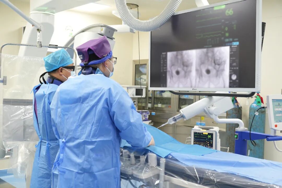 关键时刻,介入血管科主任黄迁祥提出了一个创新性的解决方案——实施前列腺动脉栓塞术(PAE)。黄迁祥介绍,该技术无需开刀,仅通过穿刺股动脉的微小创口即可完成手术,具有创伤小、麻醉风险低、恢复快的显著优势。更重要的是,能有效保护功能,极大降低了传统手术可能引发的尿失禁、勃起功能障碍等风险。在与患者及家属进行详细沟通,充分告知手术原理和预期效果后,该方案得到了一致认可。