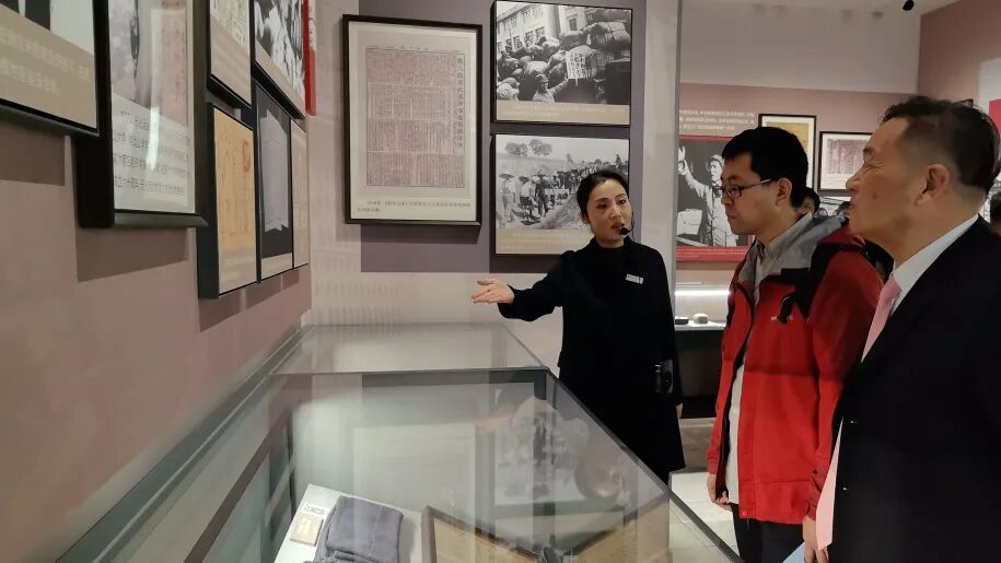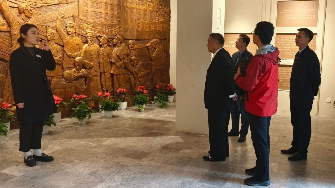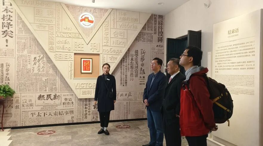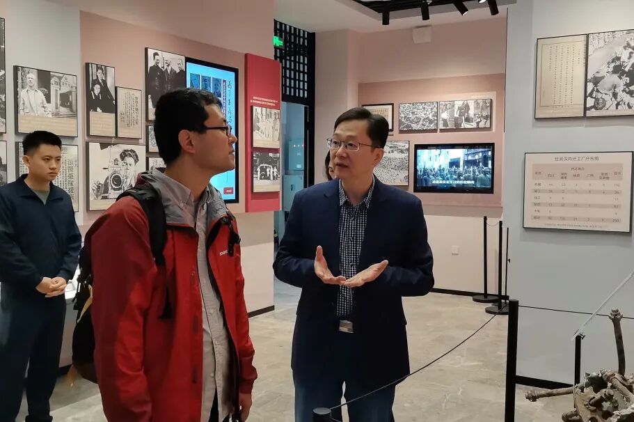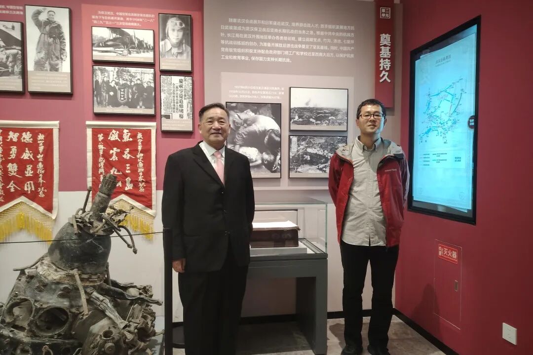 在周静馆长带领下,小林拓也、中国空军勇士陈怀民烈士侄子陈德、民间收藏家代表周啟壮、武汉人文历史爱好者袁厚翔等一行,首先参观了基本陈列《英雄城市 抗战烽火——武汉抗战历史特展》,详细了解了全民族抗战爆发后,武汉逐步成为当时全国抗战中心和武汉保卫战的相关史实,以及为巩固、发展抗日民族统一战线,周恩来、博古、董必武、叶剑英等中国共产党人在武汉所做的各种努力。