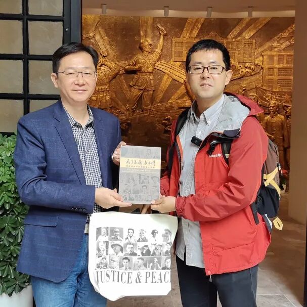 座谈结束后,双方互赠纪念品并合影留念。小林拓也还同与会者,一起来到陈怀民路探访,并发表感言:此次寻访受益颇多,之后会将这一段珍贵的历史故事整理成文发表在《赤旗报》上,供日本读者了解历史真相、正视历史、以史为鉴,共创中日和平友好未来。