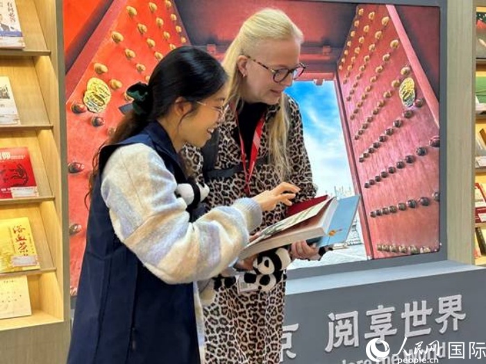 德国出版从业者代吉拉在北京图书展区。人民网记者 徐馨摄