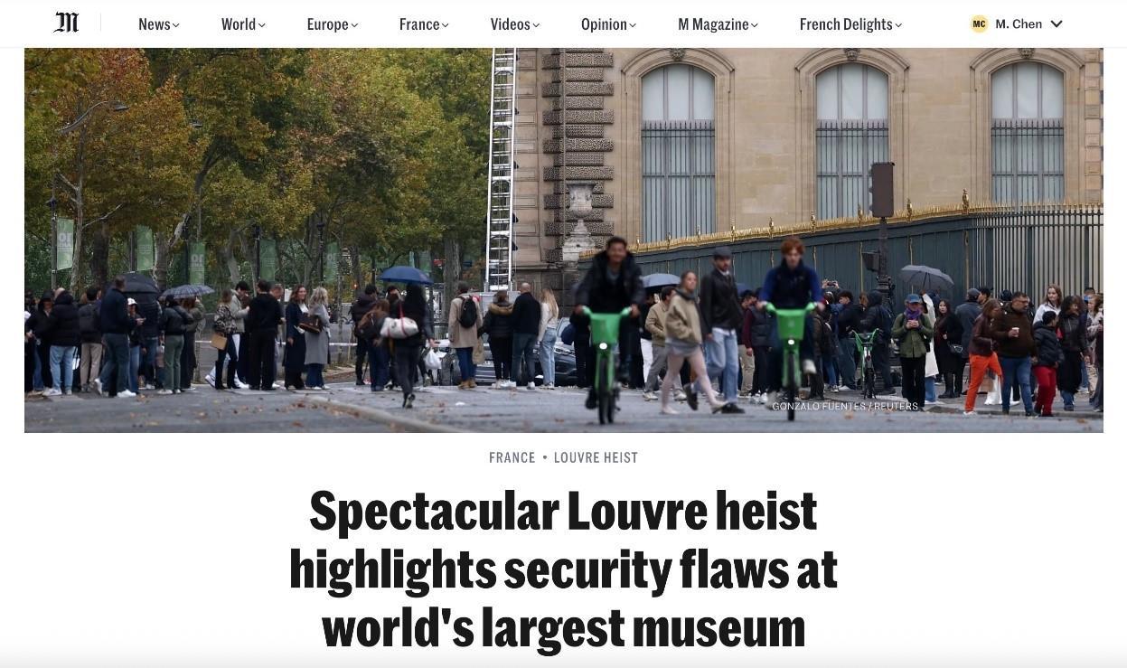 事实上,卢浮宫此前已收到巴黎警方提交的安保评估报告,馆方也正研究推进新一轮安防升级。然而,措施尚未落地,劫案就已发生。