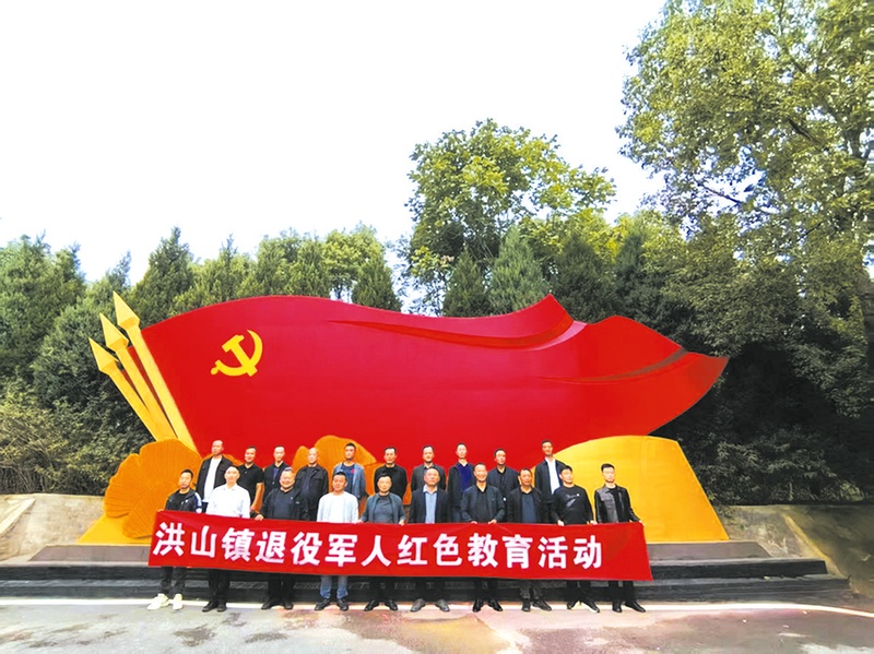 近日,随县洪山镇党群服务中心(退役军人服务站)组织兵支书、兵两委、兵教师、最美退役军人及退伍创业典型等21名代表,赴曾都区洛阳镇九口堰新四军第五师革命旧址纪念馆,开展“退役军人永远跟党走”主题教育实践活动,追寻红色足迹、传承革命精神。 (随州日报通讯员 杜鸿 刘备摄)