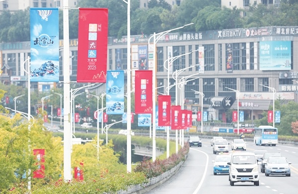 整合太极与武当山元素的道旗在十堰城区和武当山特区部分主干道两旁整齐排列,宛如一条流动的“文化风景线”;在武当山玉虚街,道路两侧的树干上悬挂起成排的红色灯笼,点点中国红为古朴街巷增添喜庆气息……2025国际武当太极文化节即将到来,连日来,十堰城区和武当山特区持续加大环境提升与氛围营造工作,喜迎四海宾朋到来。