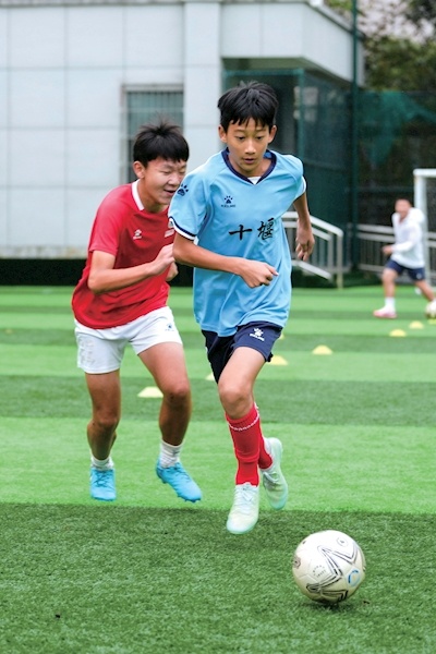 秋雨如织,十堰市体育中心足球场上,市俊豪足球俱乐部一群身着训练服的少年在奔跑跃动。