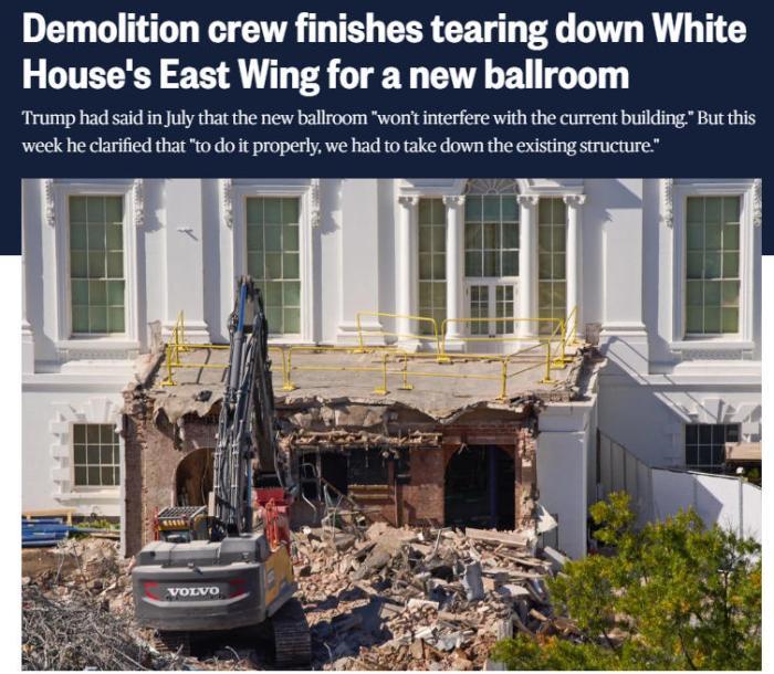 据此前报道,白宫东翼被拆的举动持续引发争议。路透社指出,美国最具历史意义的建筑之一被部分拆除,引发众多民主党人的愤怒抗议,并质疑特朗普政府是否遵守了恰当的程序。白宫驳斥了这些批评,称其为“刻意制造的愤怒”。
