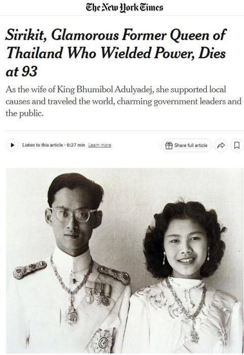 中新网10月25日电 据美国《纽约时报》、路透社等多家媒体报道,泰国王室发布公告说,泰国王太后诗丽吉于10月24日晚逝世,享年93岁。