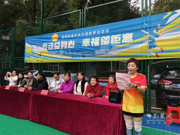 荆楚网(湖北日报网)讯(记者 李燕 通讯员 杨斯磊)秋高气爽,丹桂飘香。10月26日上午,武昌区南湖街道中央花园社区“运动‘益’身心,幸福‘邻’距离”秋季运动会拉开帷幕,活动以“以球会友、强身健体、促进邻里沟通”为核心,吸引辖区广大体育爱好者踊跃参与。
