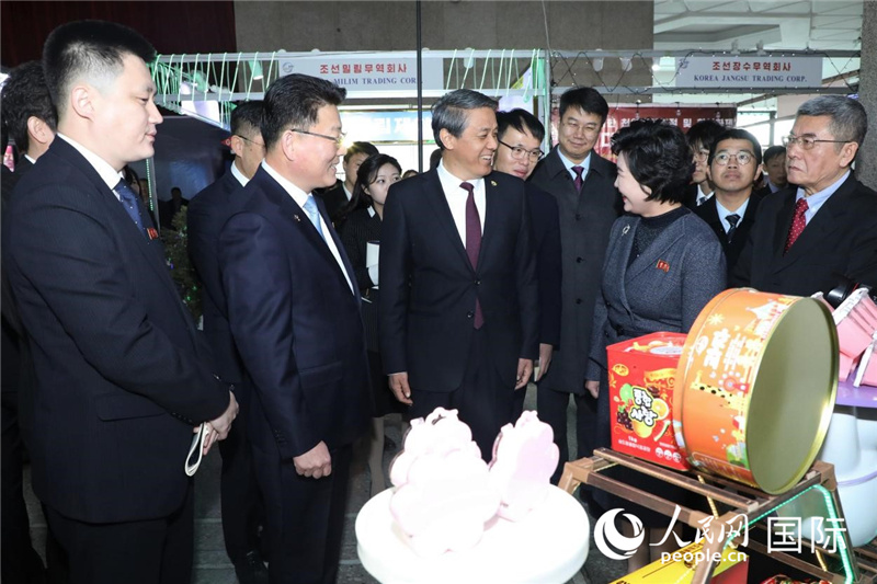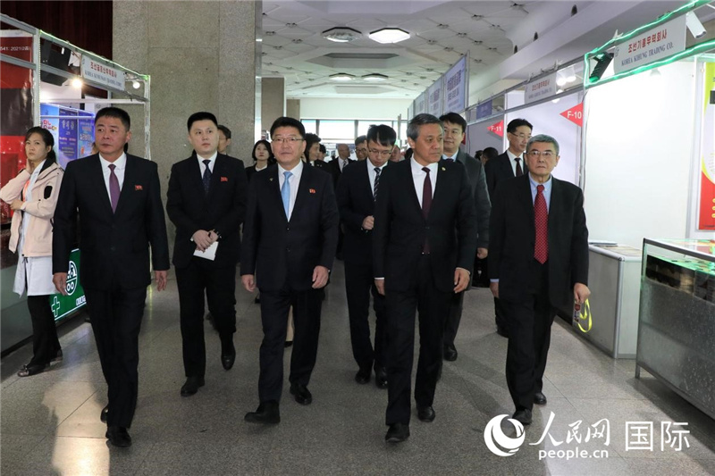 开幕式结束后,中国驻朝鲜大使王亚军陪同经济相参观了部分中国企业展台,详细听取工作人员对产品的介绍。人民网记者 刘融摄