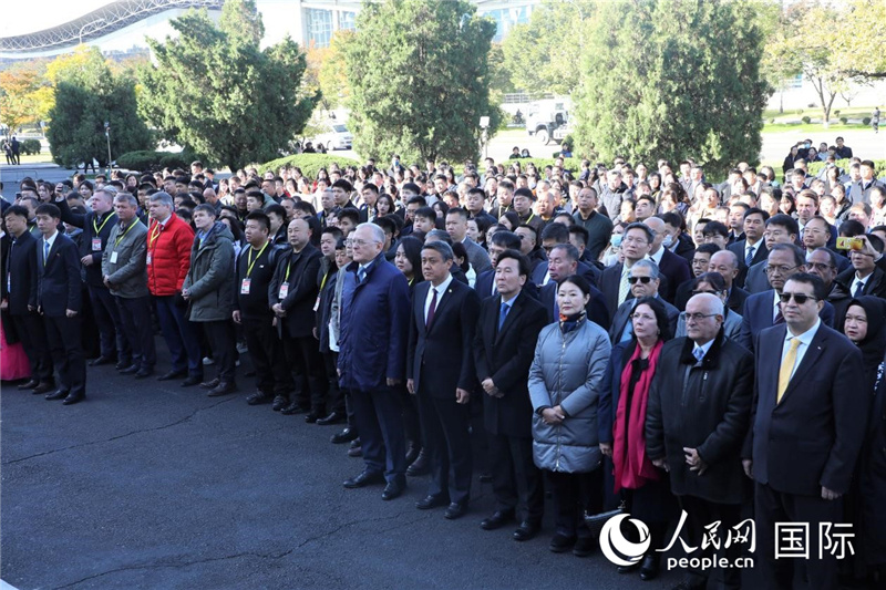 应朝方邀请,中国驻朝鲜使馆外交官和驻朝外交使团一道参加开幕式。人民网记者 刘融摄
