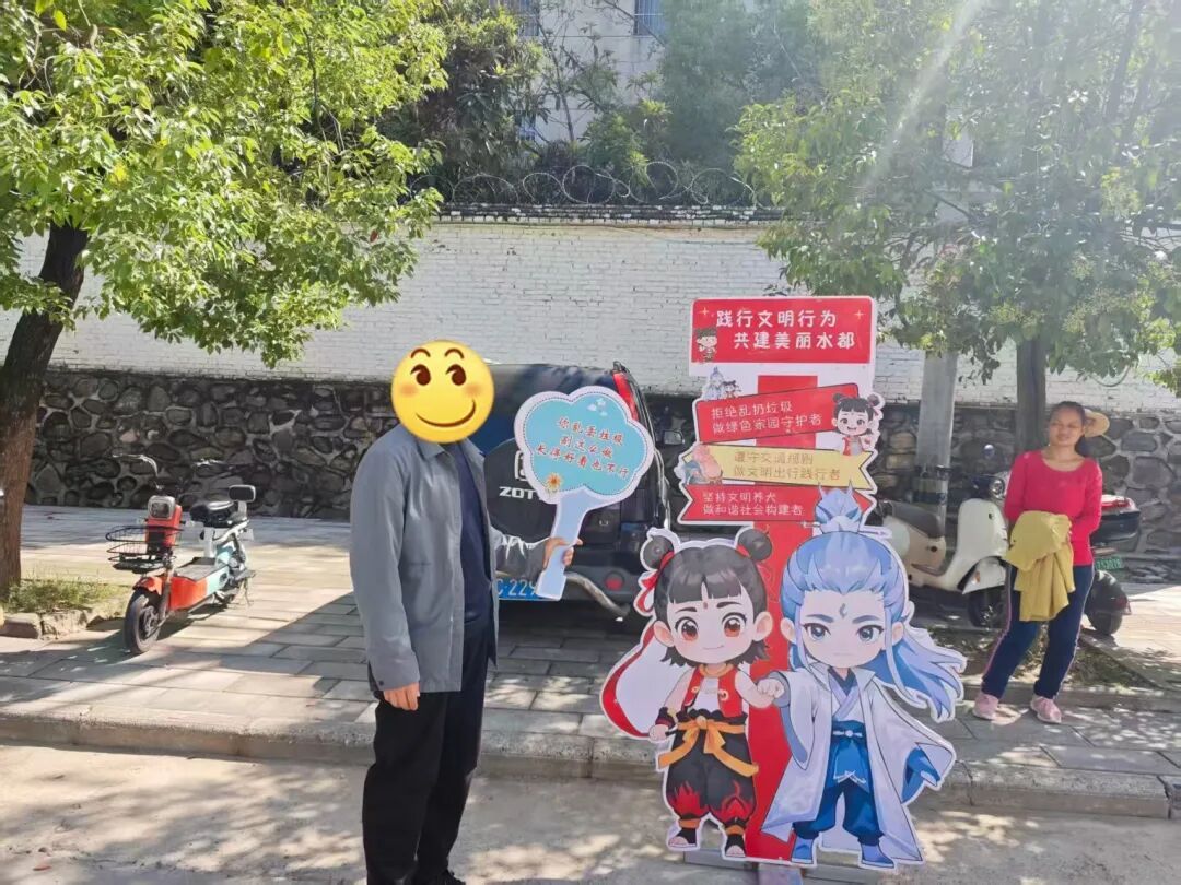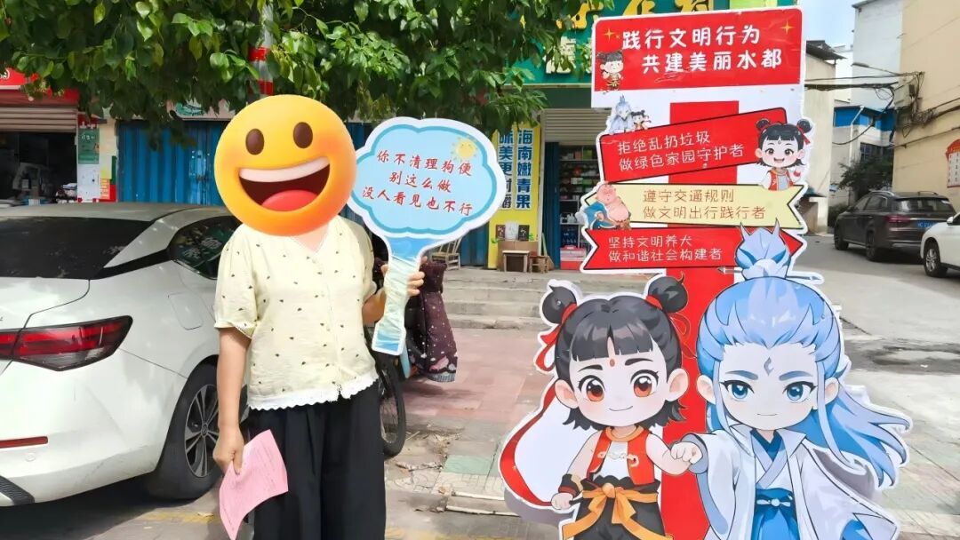 不同于传统劝导的生硬说教,丹江口市让不同姿势的小哪吒化身“文明劝导员”,或叉腰微笑,或俏皮歪头,手持或身靠“文明标语”,以灵动活泼的立牌形象出现在街头巷尾,通过“萌态劝导”拉近与市民的情感距离,吸引众多市民驻足拍照并自发分享至社交平台。