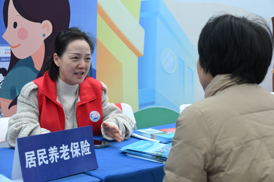 在宜昌市伍家岗区三峡环球港广场,群众向工作人员了解居保提档缴费。