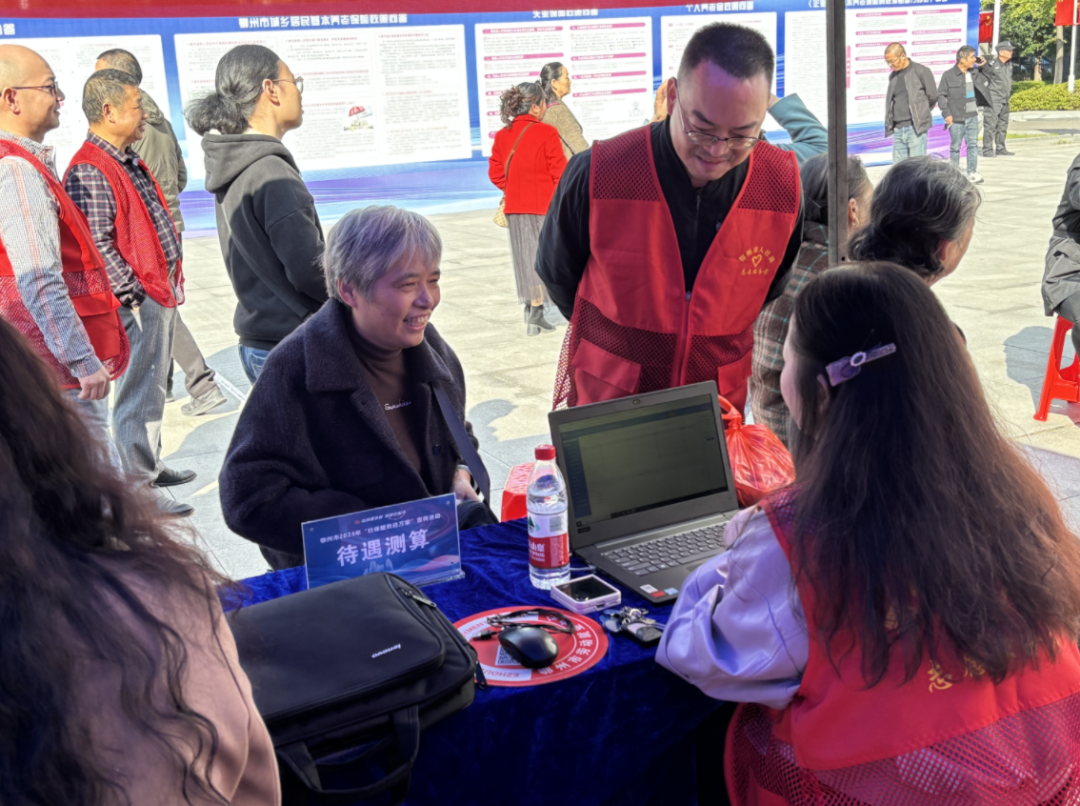 鄂州市“社保服务进万家”主场活动现场,工作人员为即将退休的群众测算社保待遇。