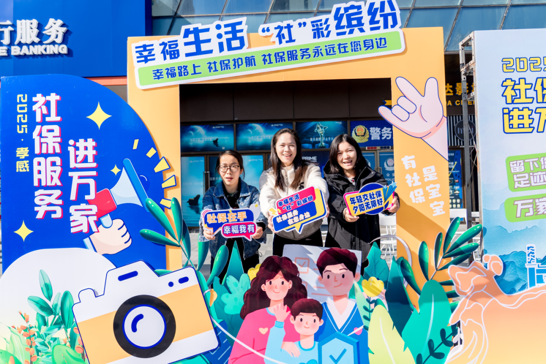 孝感市“社保服务进万家”活动启动仪式现场,年轻人在打卡点留下幸福笑脸。