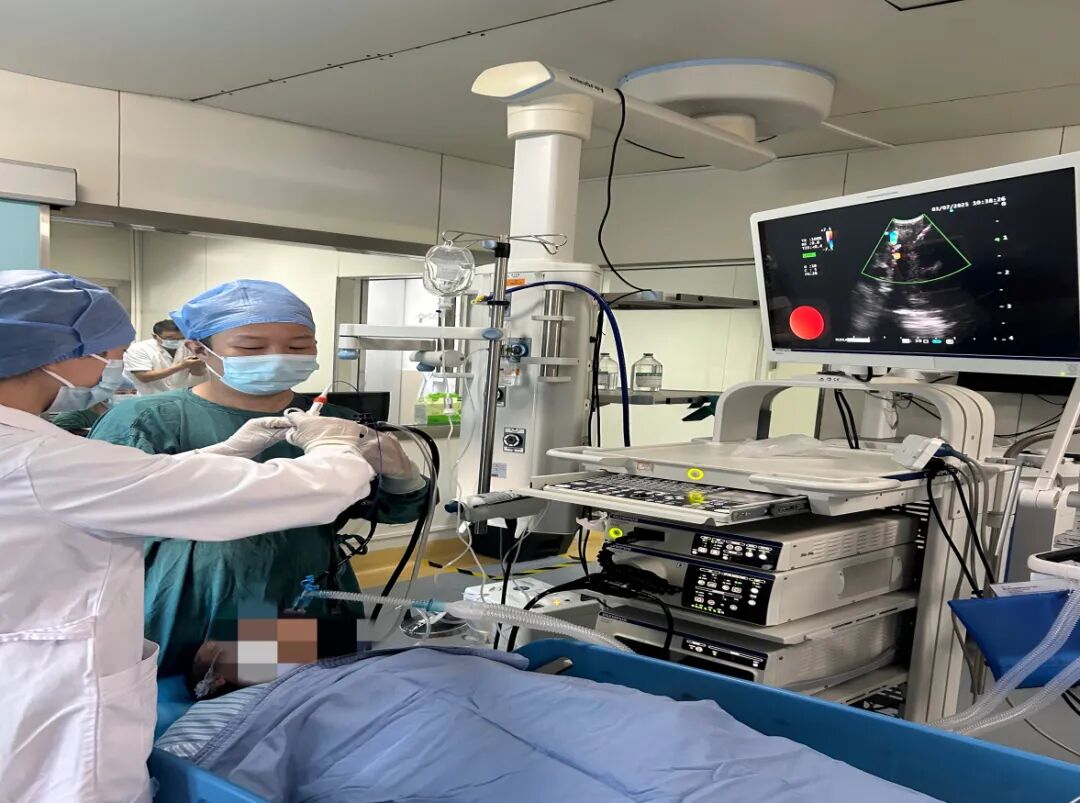 呼吸与危重症医学科副主任医师刘钧、主治医师邱琦牵头组建诊疗团队,经周密术前讨论,决定采用全麻喉罩下超声引导穿刺针建隧的纵隔淋巴结活检技术(EBUS-TBNB)。