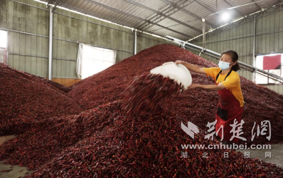 在咸丰县清坪镇合胜农业专业合作社的晒场上,一串串鲜红的辣椒铺满晾晒架,村民们正忙着翻晒、分拣、烘烤,空气中弥漫着浓郁的辣椒香气,一派丰收的忙碌图景。