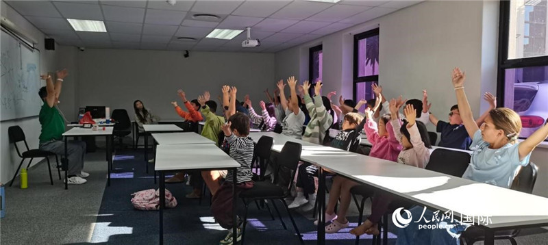 林晟昱老师在西开普大学中医孔子学院向当地师生传授秧歌“诀窍”。人民网记者 邹松摄