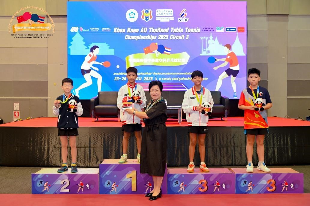 人民网曼谷10月29日电 (记者孙广勇)10月23日至26日,由中国驻孔敬总领馆与泰国乒乓球协会、孔敬公立华侨学校联合主办的全泰四星级乒乓球赛“中国国庆暨中泰建交杯乒乓球比赛”圆满落下帷幕。