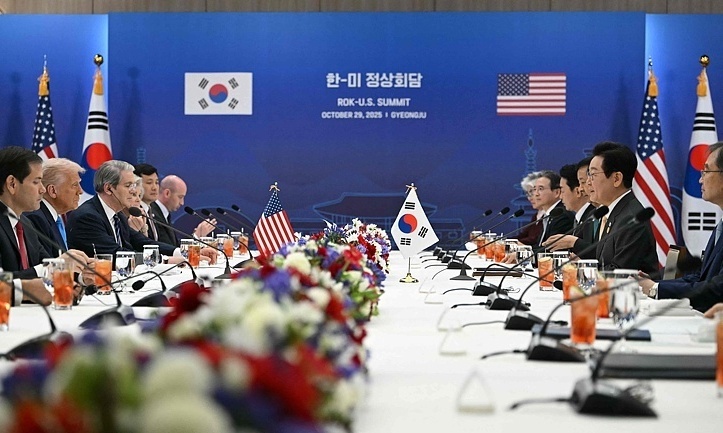 韩国总统李在明10月29日在韩国庆州同到访的美国总统特朗普会晤,讨论巩固韩美同盟等问题。