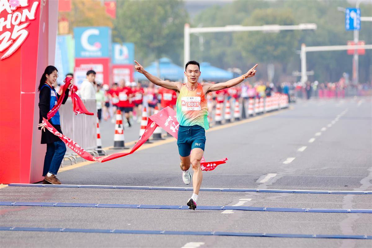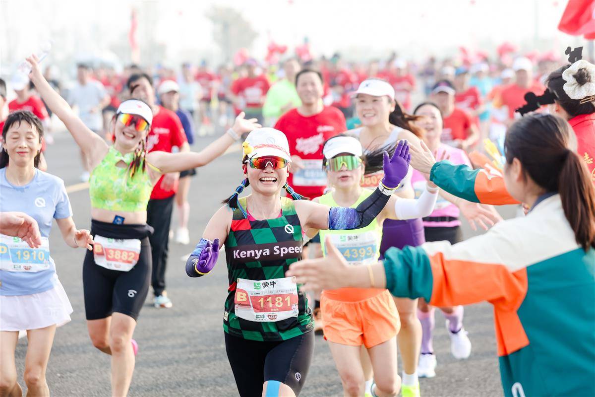 蒙牛2025孝感马拉松选手冲过终点线。(孝感马拉松组委会供图)