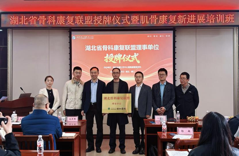 近日,“湖北省骨科康复联盟授牌仪式暨肌骨康复新进展培训班”在潜江市中心医院成功举办。此次授牌标志着潜江市中心医院正式成为湖北省骨科康复联盟成员单位,将推动本市骨科康复服务迈向标准化、同质化发展新阶段。
