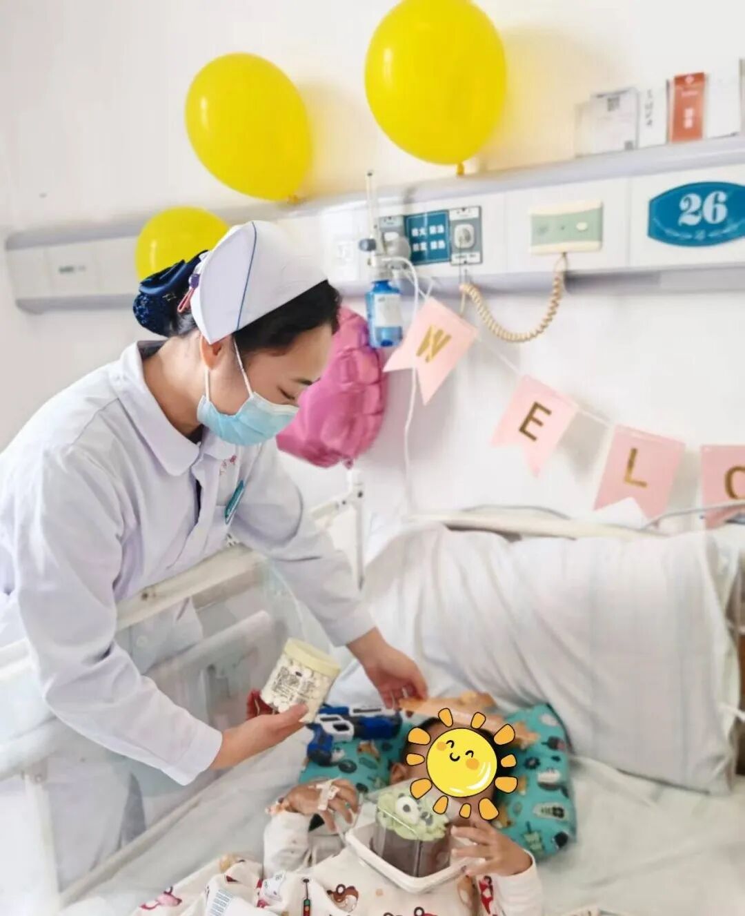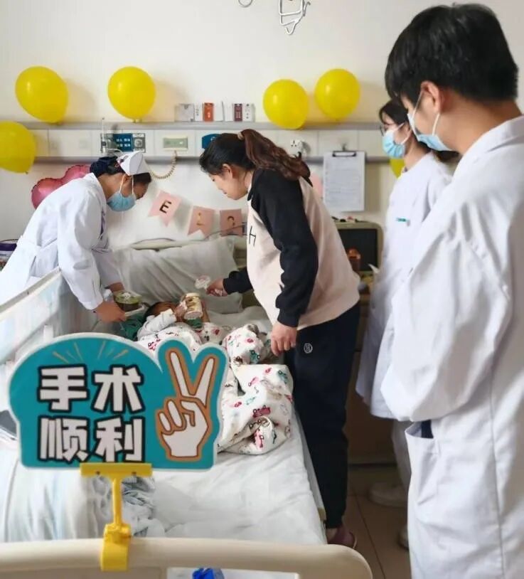 手术当天,科室全体医护人员在全力保障手术顺利进行的同时,也在为生日会忙碌着。几位已下夜班的护士主动放弃休息,自发承担起生日会的筹备工作:有的专程前往取预定好的小蛋糕,有的蹲在病房角落认真吹着彩色气球,还有人精心挑选卡通贴纸,将病房的窗户、柜子装点得童趣盎然。