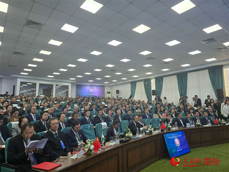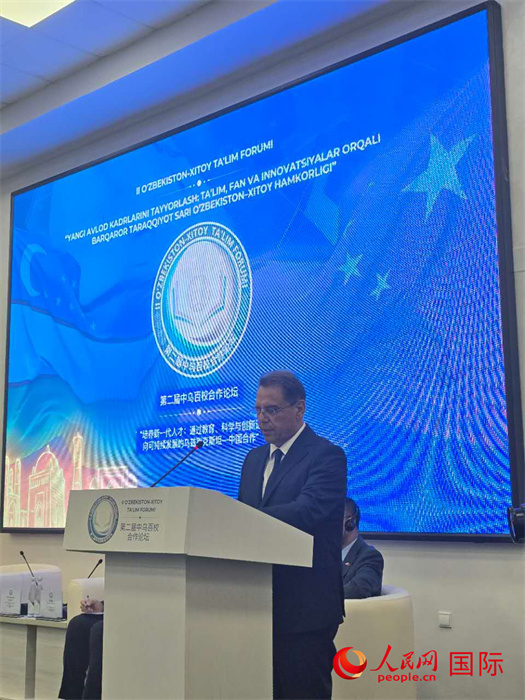 乌兹别克斯坦高等教育、科学与创新部部长孔格拉特拜·沙里波夫致辞。人民网记者 李强摄