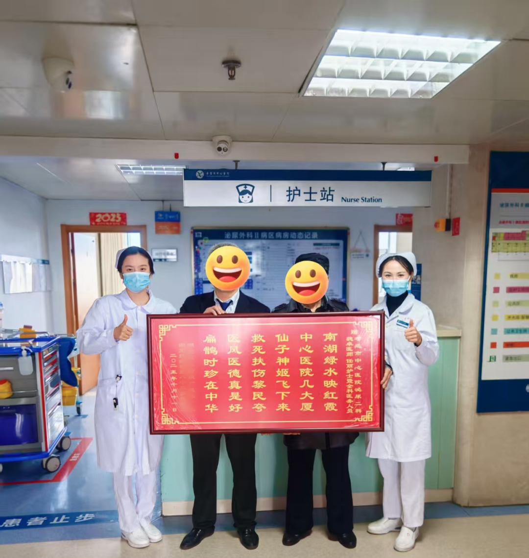 荆楚网(湖北日报网)讯(通讯员 颜飞)“金杯银杯不如患者的口碑!” 近日,孝感市中心医院泌尿外科II病区暖意融融,已康复出院的82岁患者钱爷爷在家人的陪伴下,专程回到医院,将一块镌刻着对医护人员感激之情的牌匾,郑重地交到了医护人员手中。