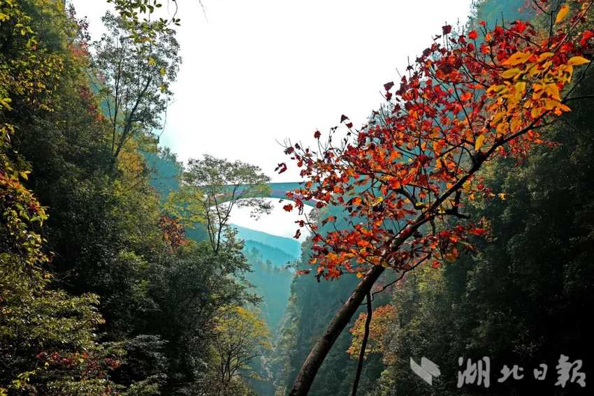 秋光正好,蝶舞清江·地心谷景区进入一年中最富诗意的季节。峡谷两岸层林尽染,赭红、金黄与墨绿交织,构成一幅流动的山水长卷。谷内温度宜人,溪流清冽,瀑布飞悬,空气中富含负氧离子,是放松身心、亲近自然的绝佳场所。