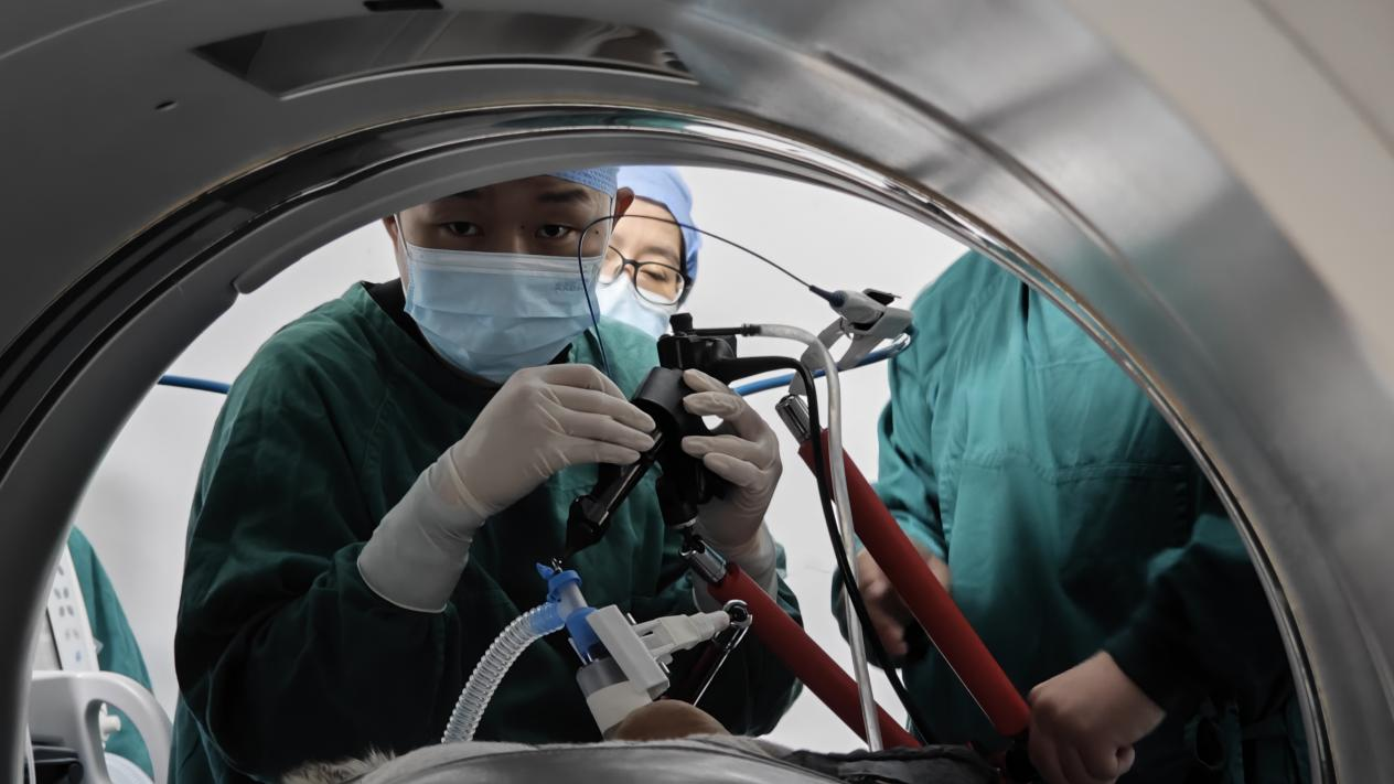 针对两名患者的复杂病情,医院启动MDT多学科联合诊疗机制。放射影像科、核医学科、疼痛科、胸外科、肿瘤科等多学科专家共同研讨,呼吸与危重症医学科刘钧副主任医师、邱琦主治医师等反复评估患者病情,经与家属充分沟通后,最终决定采用AI+AR光学导航支气管镜联合径向超声引导下的冷冻消融术,在精准作用于病灶的同时,最大程度保护患者肺功能。
