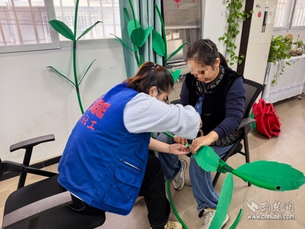 这棵“爱之树”是街道残联联合西厂口社区开展的“杏运相伴,玫好家园”残健融合公共艺术共创活动的成果,辖区阳光家园学员、助残志愿者、居民代表和社区工作者共同参与,以亲手制作的巨型银杏叶与玫瑰花装点社区空间,传递“黄鹤楼下是我家”的温暖。