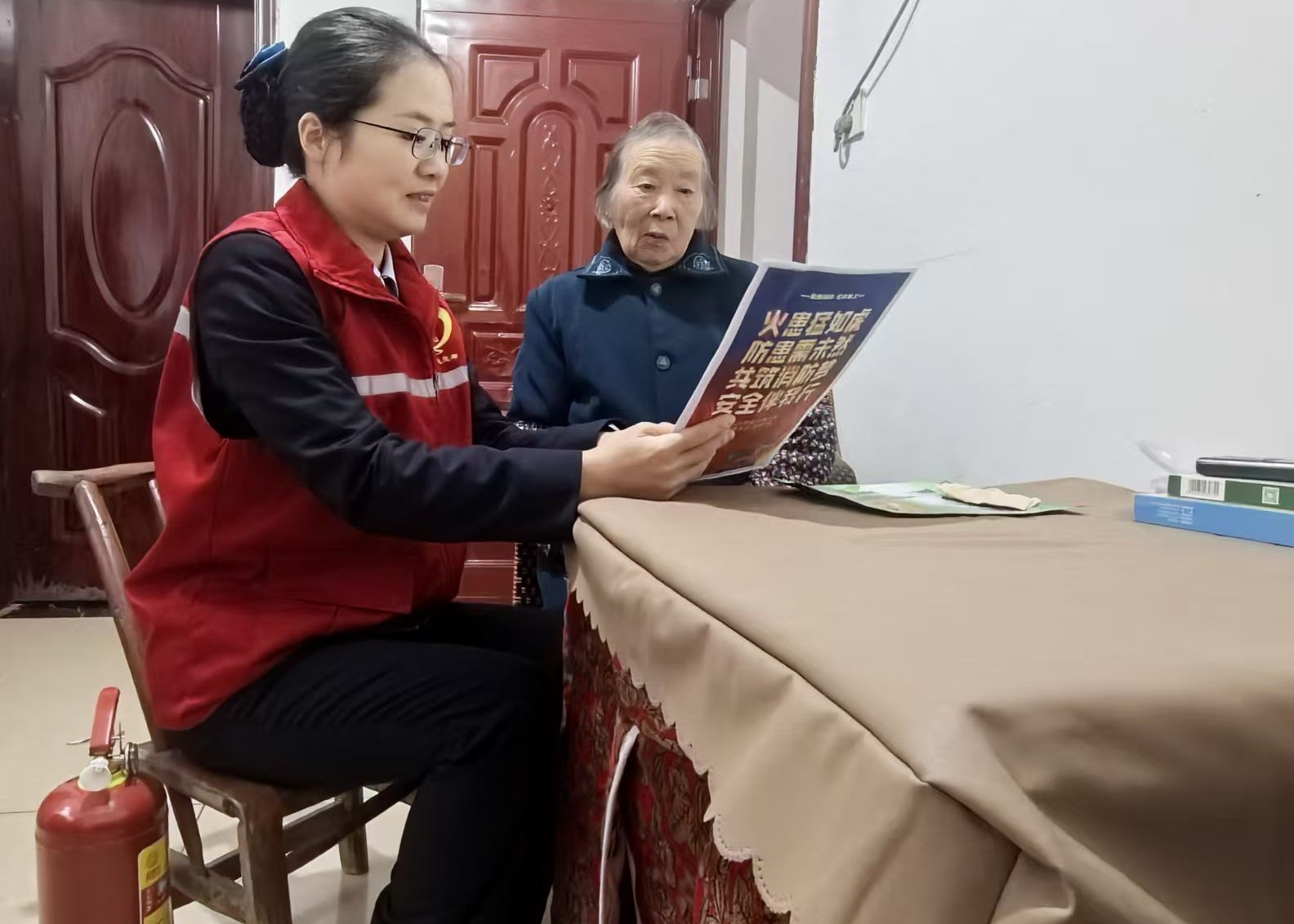 志愿服务队走进居民社区,开展“敲门行动”,重点关注老旧小区及独居老人等群体,耐心讲解取暖、燃气使用及火场逃生等安全常识,并将“取暖器远离易燃物”“出门务必关闭火源”等实用提醒与宣传资料一同送至居民手中,打通消防安全宣传“最后一米”。