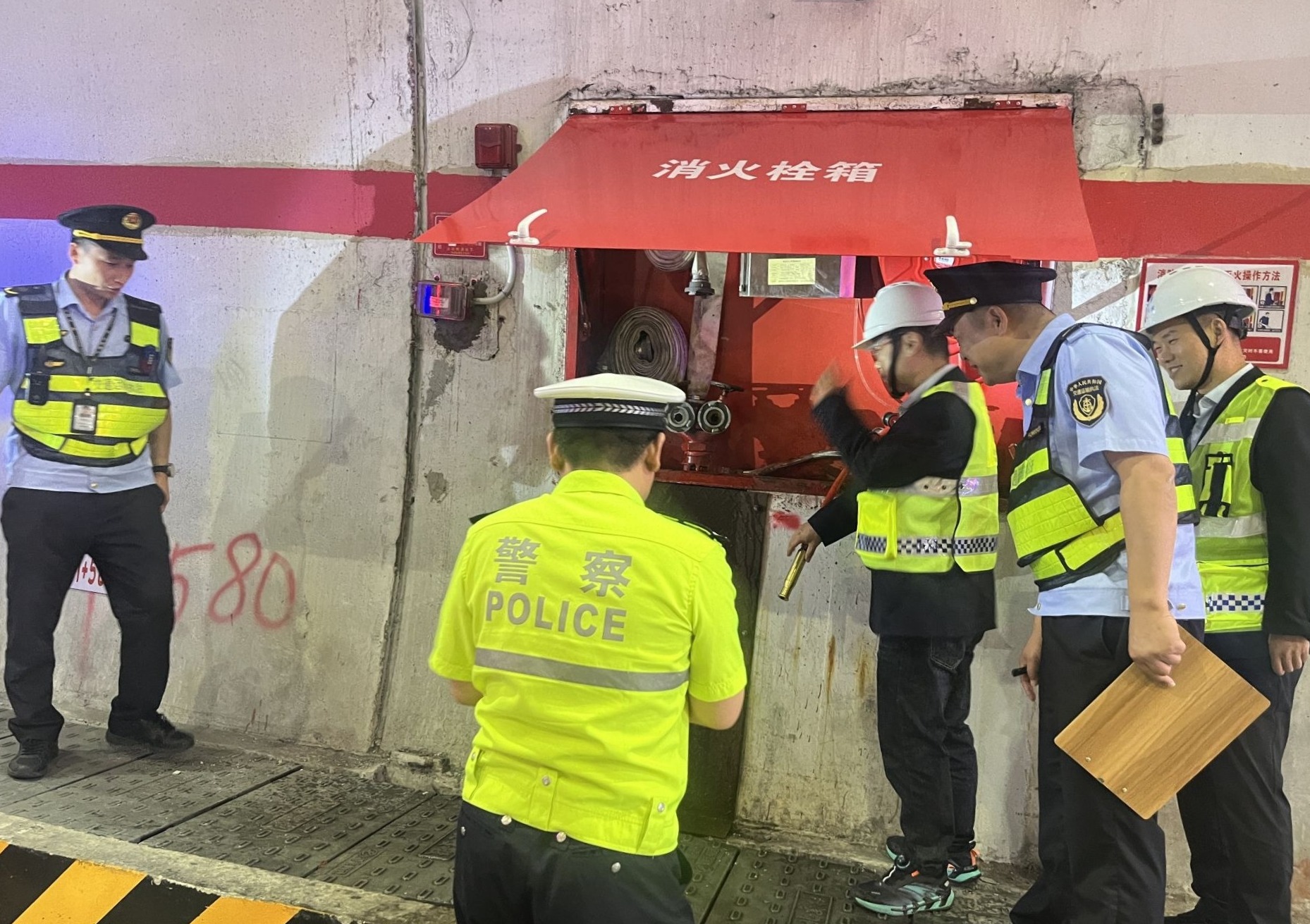 “这边消防栓接口无松动,水压达标!”“应急照明设备全部正常亮起!”在步丈岭隧道内,综合巡检办公室联合交警、路政等一路多方人员,手持检查记录表,沿着隧道侧壁逐点核查消防设施。大家分工协作,有的俯身检查消防栓开关灵活性,有的核对设施巡检记录,现场交流处置流程、明确联动职责,让应急处置能力在实地测试中得到提升。